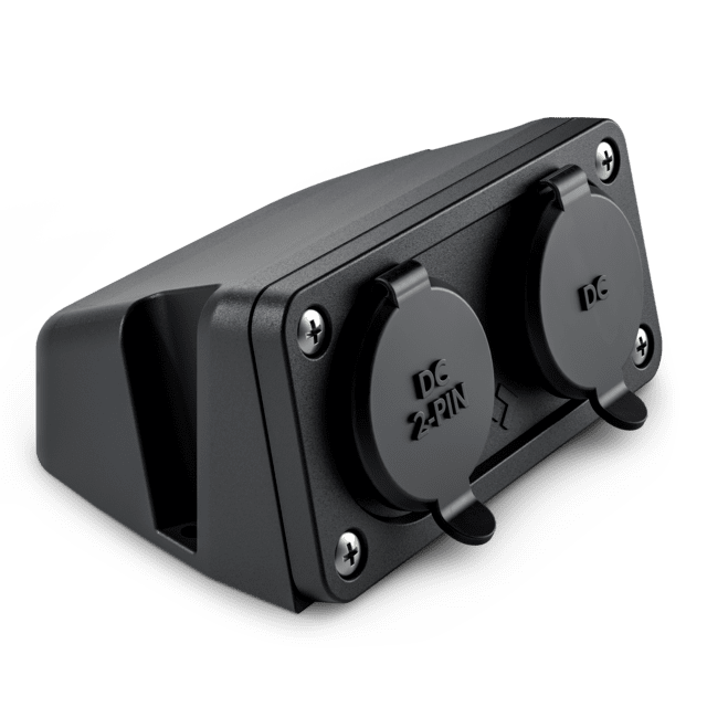 Includes two socket types: a standard DC outlet and a 2-pin threaded outlet